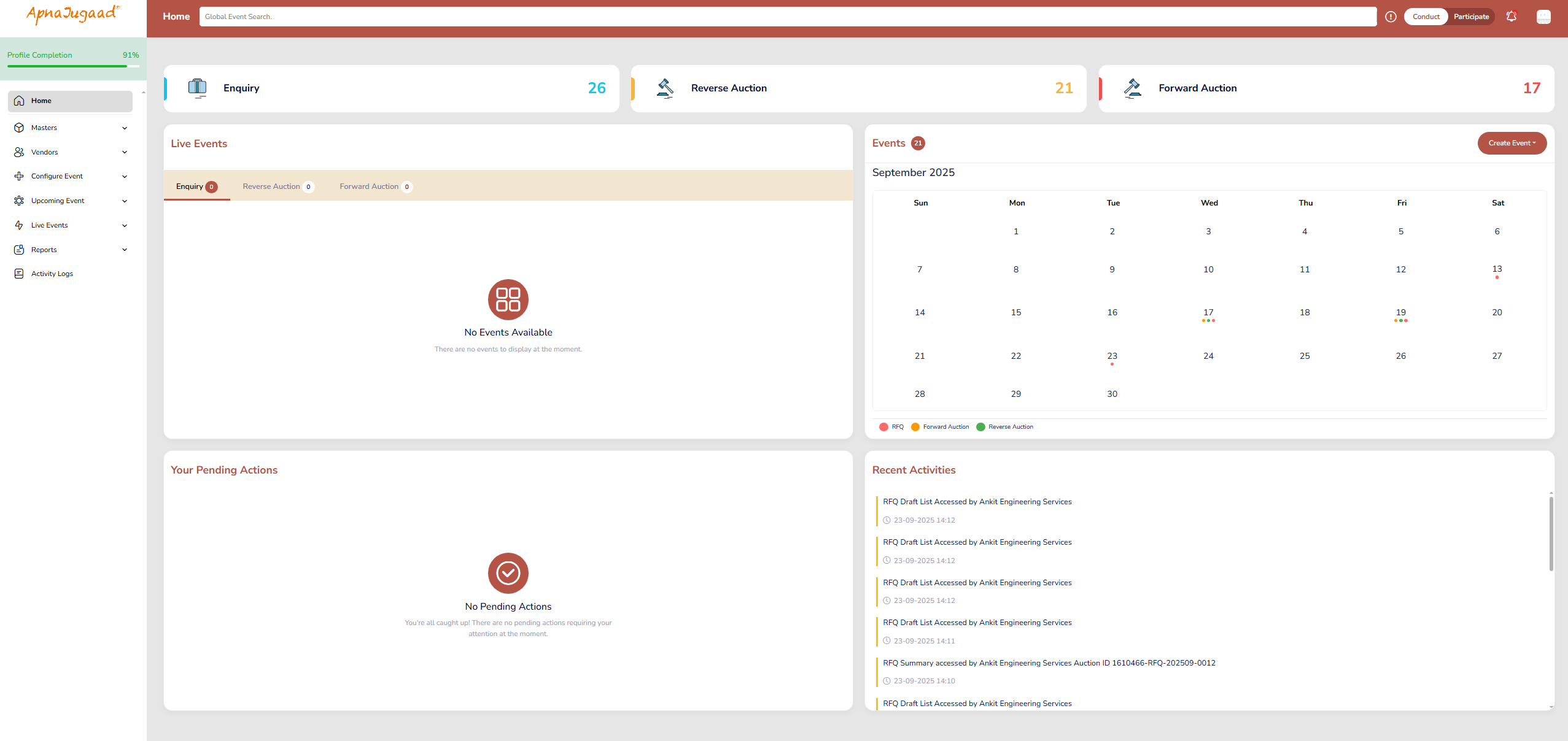 1. Your Dashboard: The main dashboard provides a quick overview of all your events, including those scheduled to begin in the future.