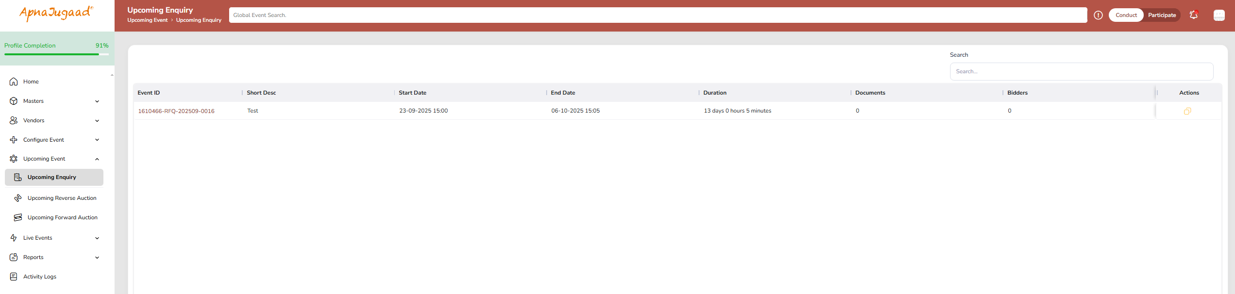 2. Upcoming Events Section: A dedicated section is available in Conduct mode. This list includes events you have created that are scheduled to go live.