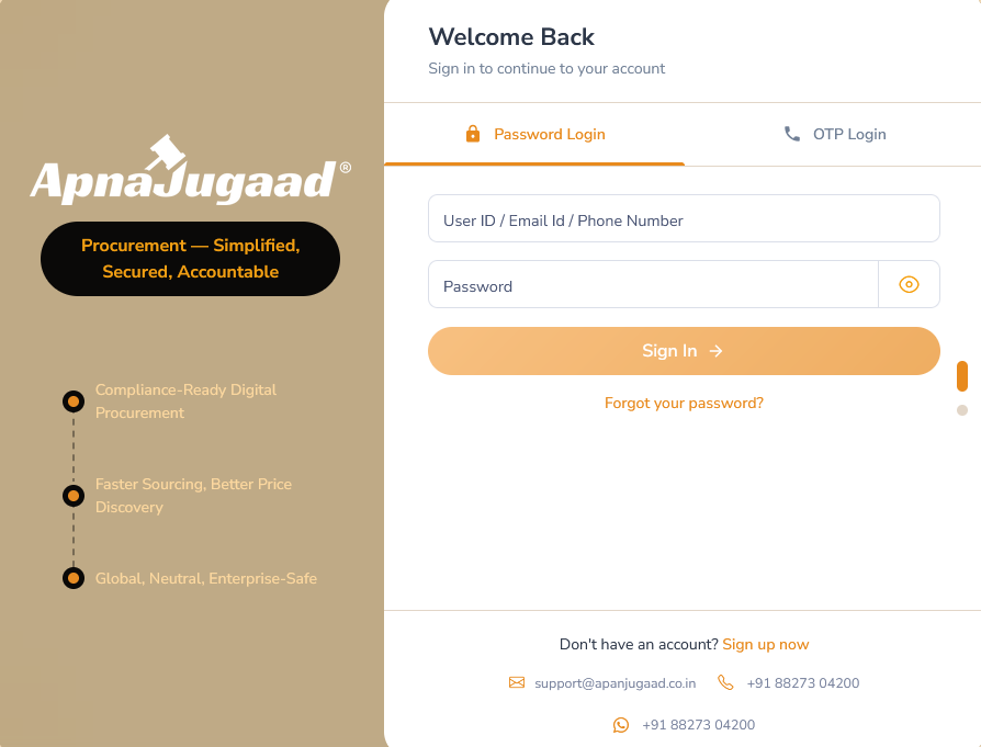 1. To begin, you will need to access the portal's login page. Simply navigate to https://v3.apnajugaad.co.in/auth.