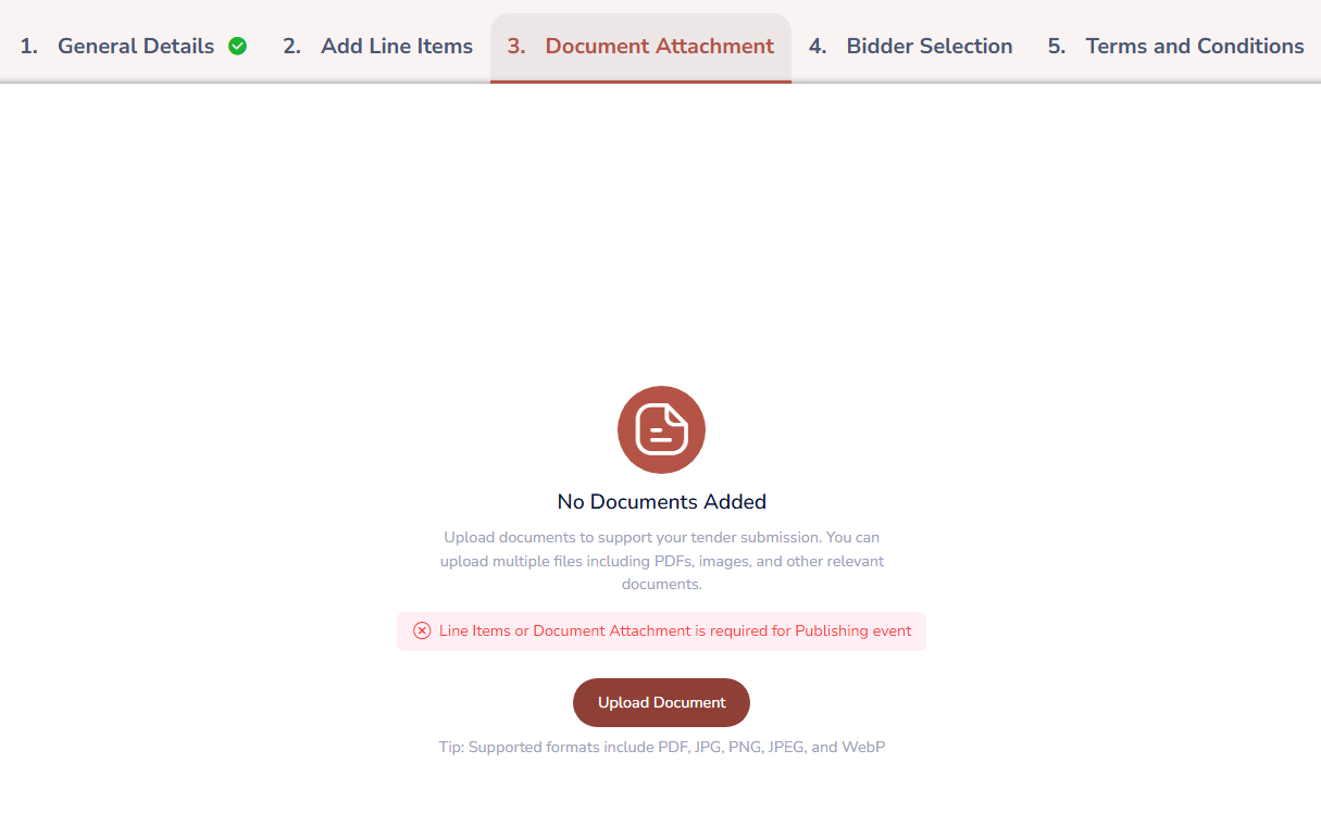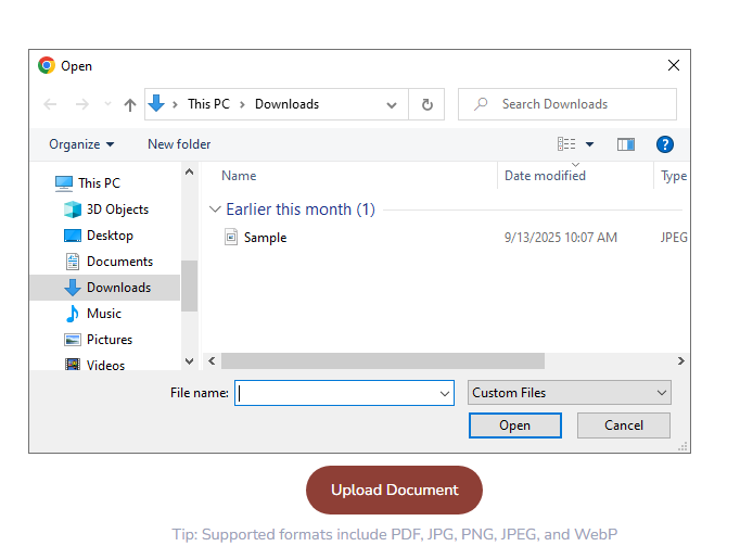 To attach a document, click on the ‘Upload Document’ button. Select the desired file from your system and then click on ‘Upload’ to complete the process.