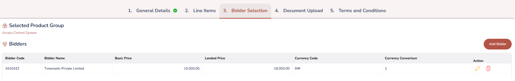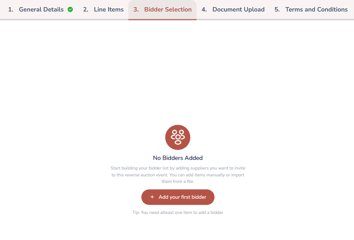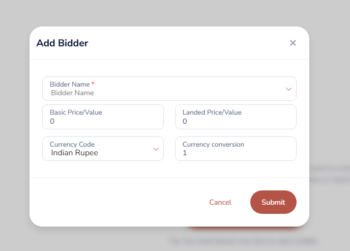 Add and select the appropriate Bidder from the available options.