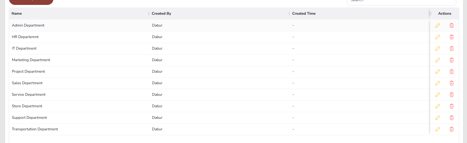Click the Delete (trash) icon for the department.